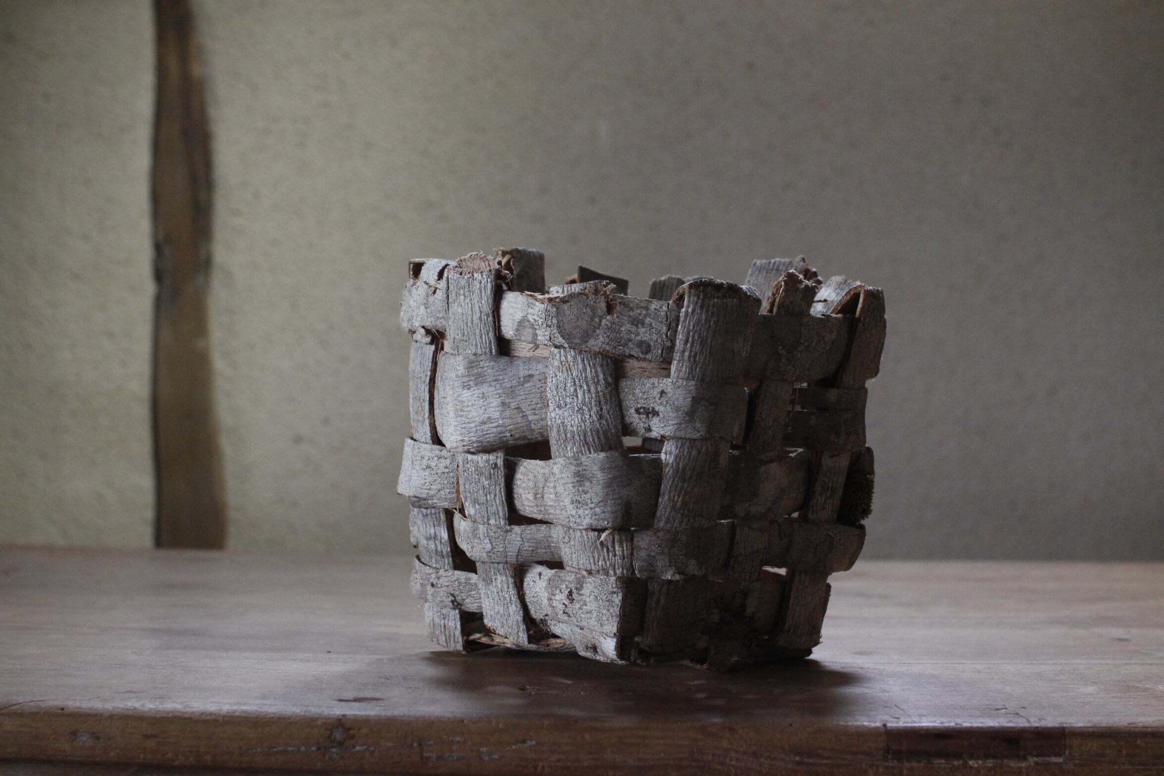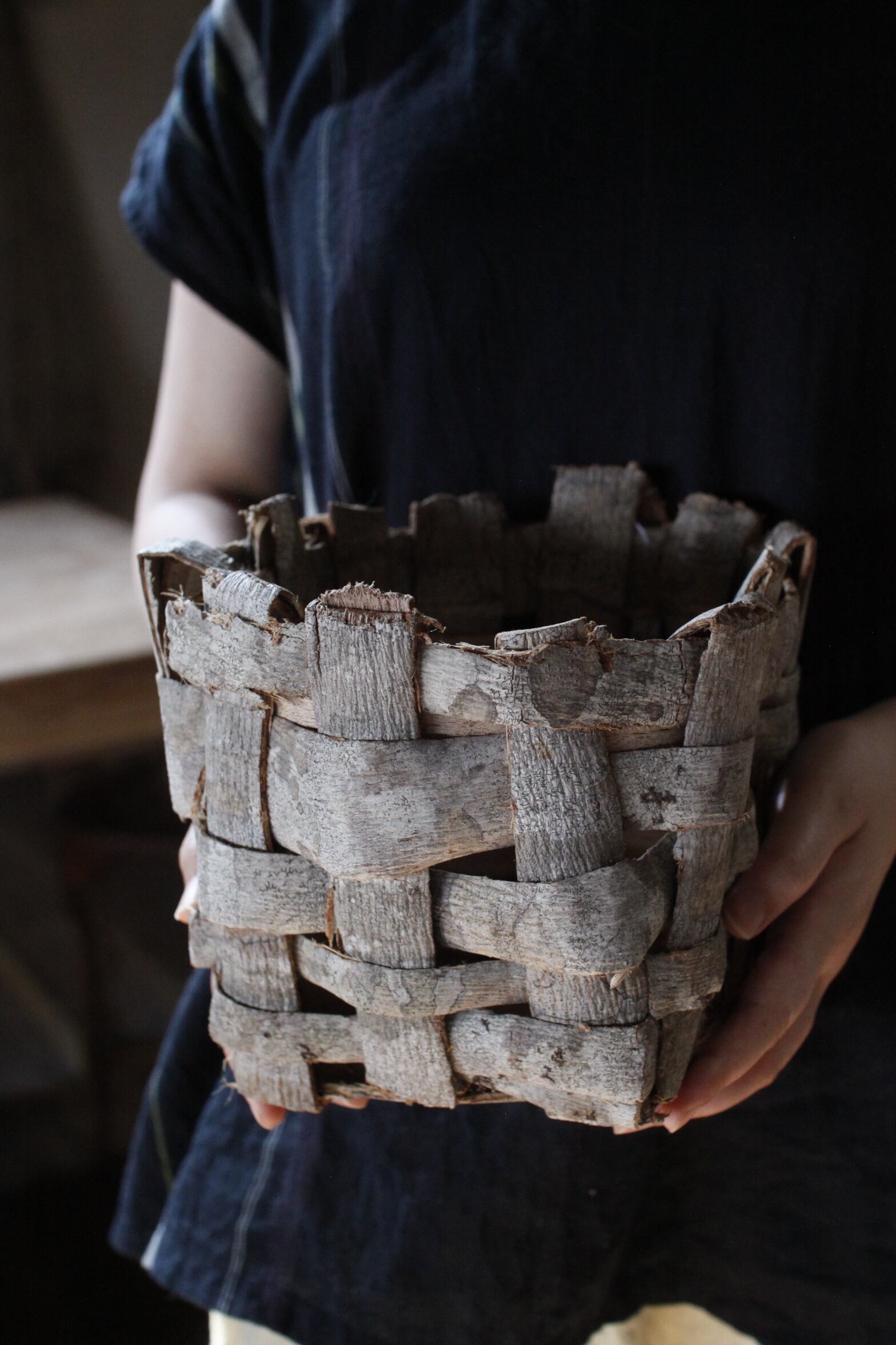 樹皮の繊維を縒って作られた正しく自然のかご。