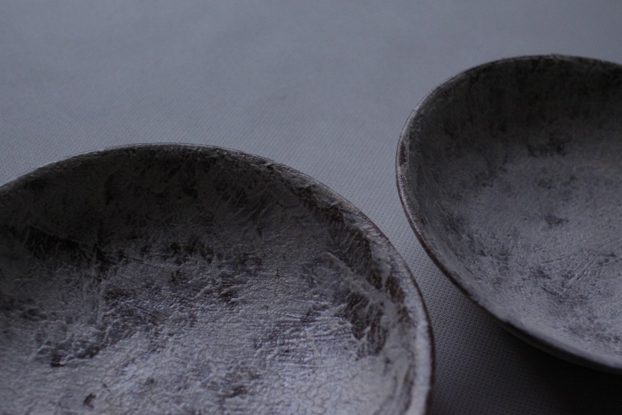 杜胡では青磁ではなく土の温かみや荒々しさの感じるテクスチャの効いた表情の器をリクエストして制作いただいています。