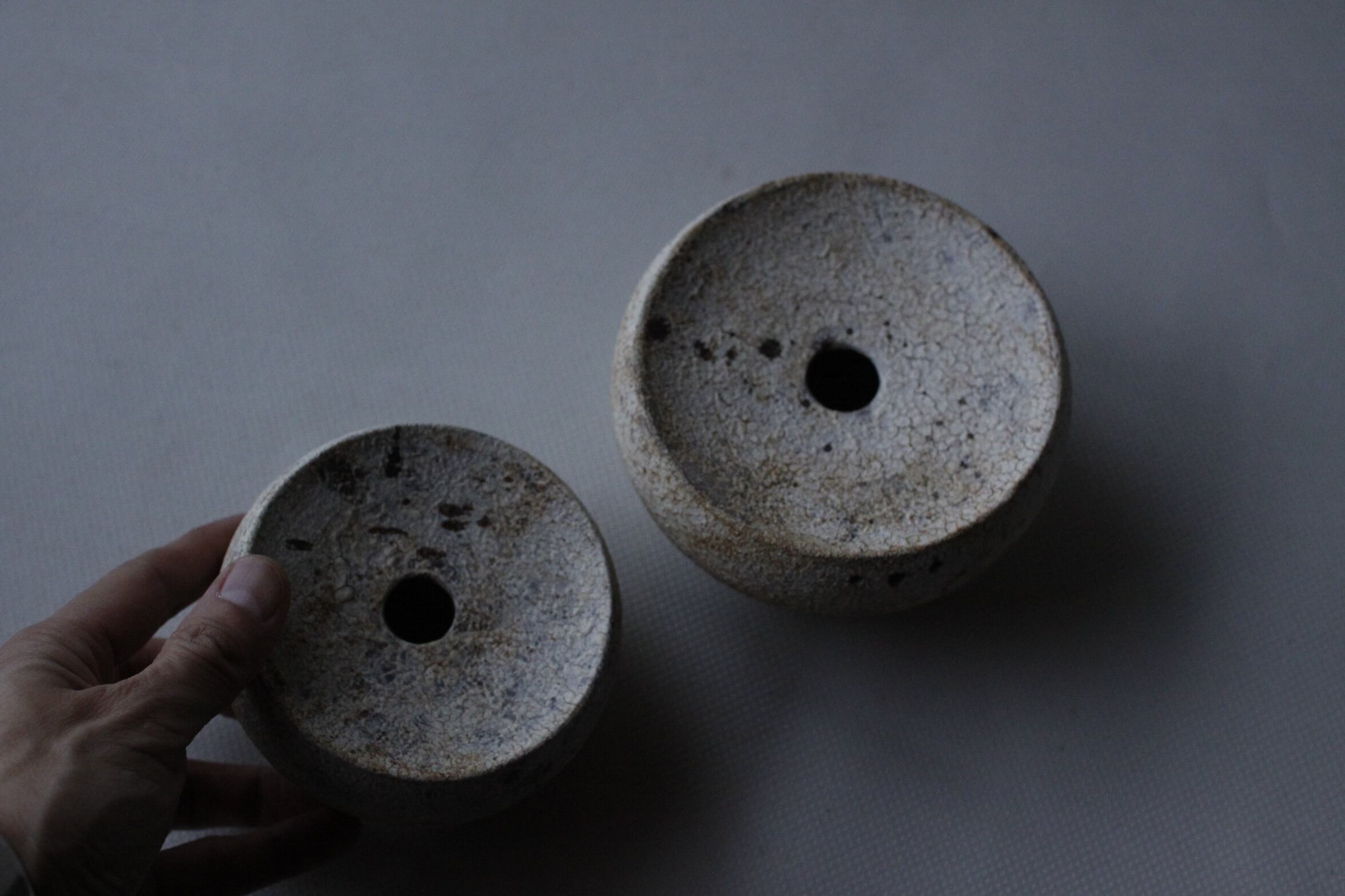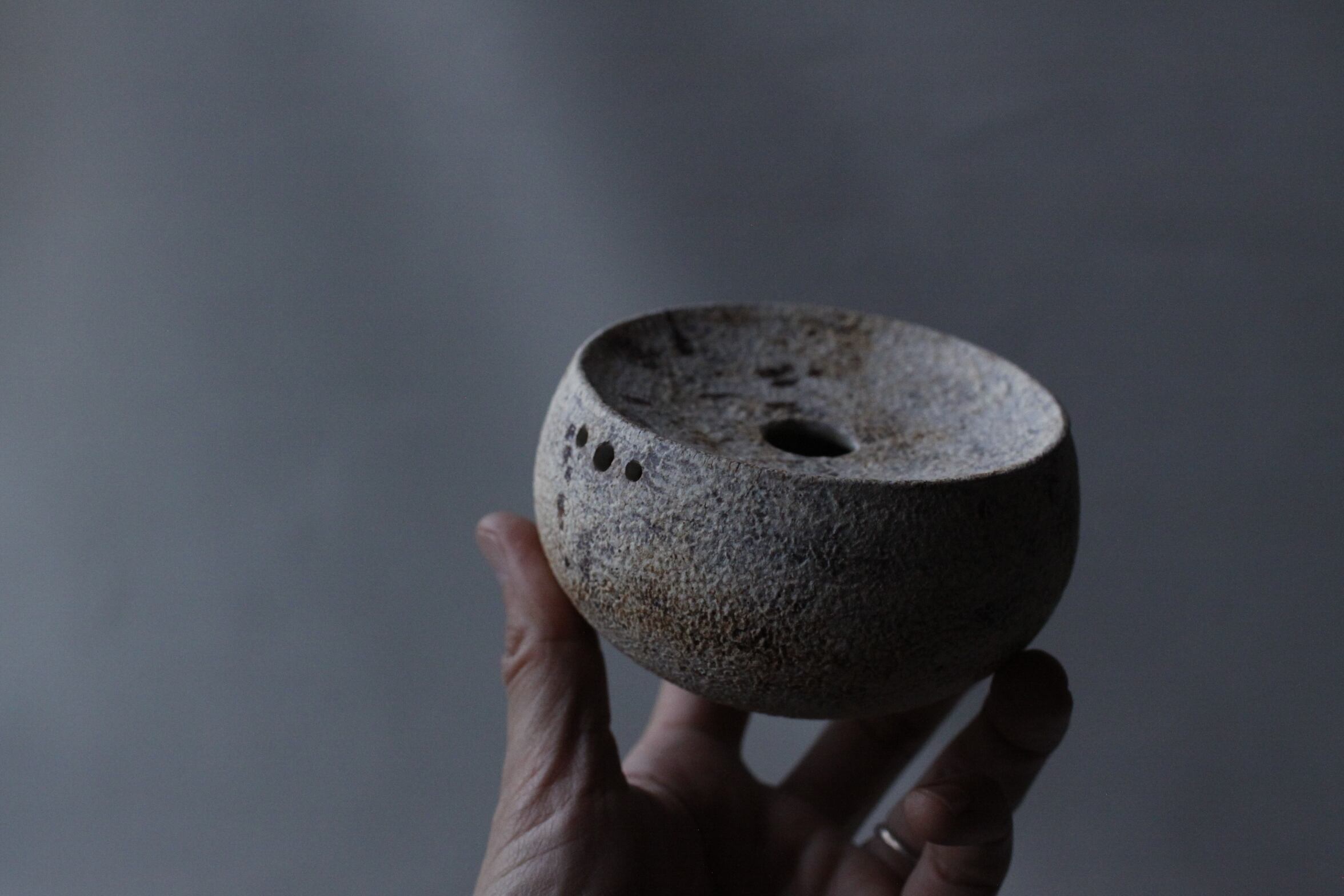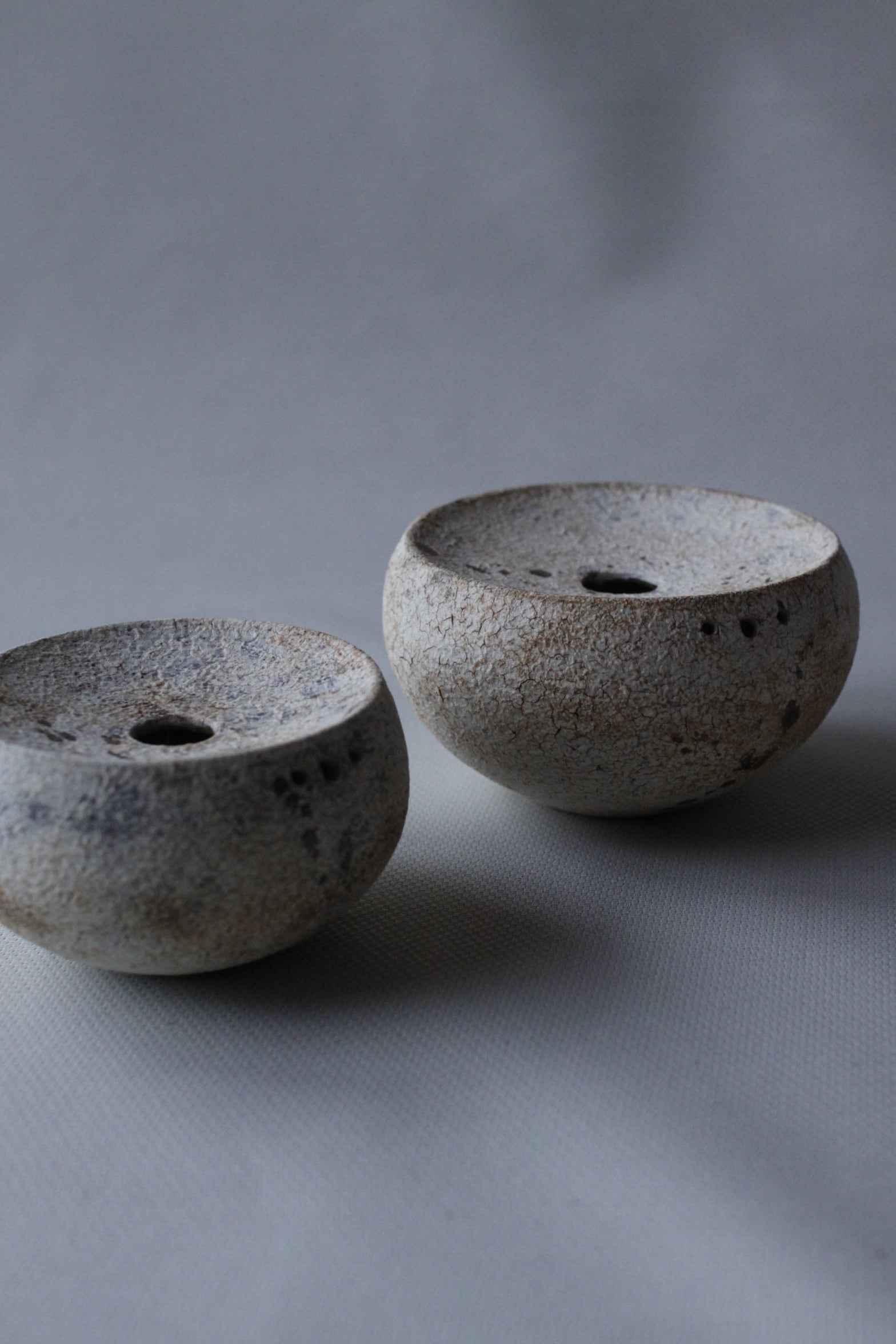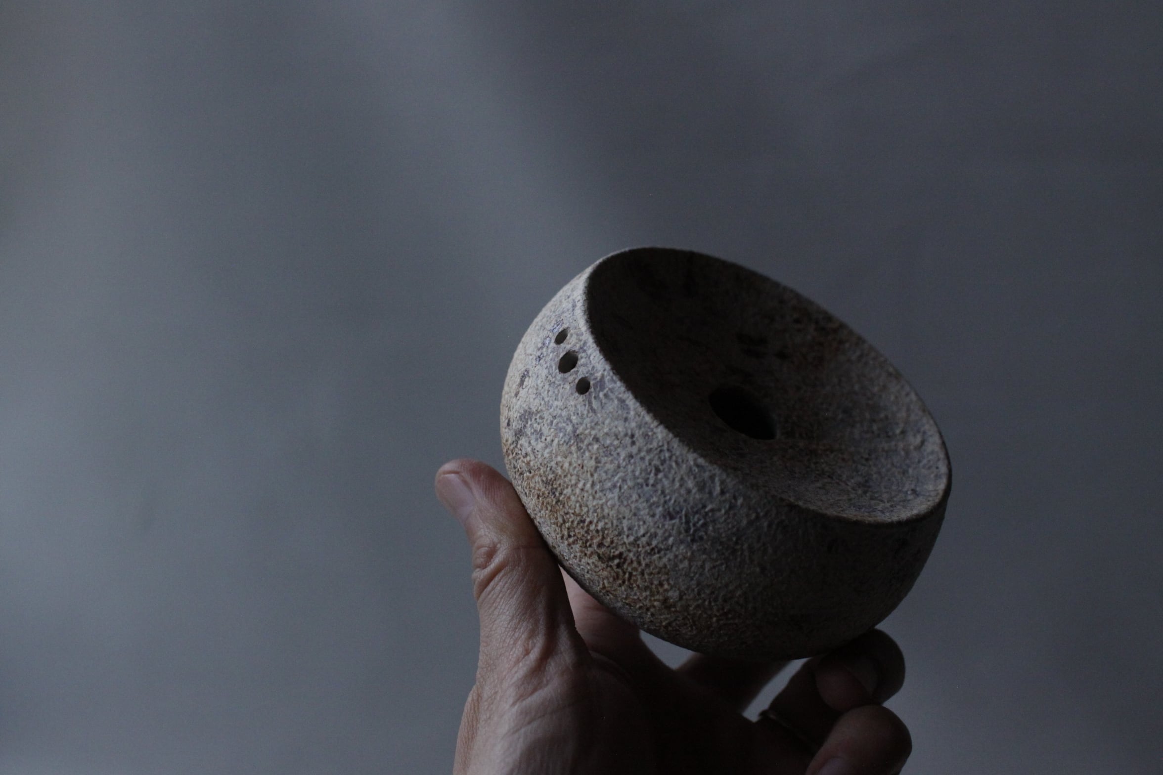 【杉田貴亮】 風見窯 月面テクスチャ Mサイズ 半月花入れ 菓子台 10cm ×高さ6.5cm