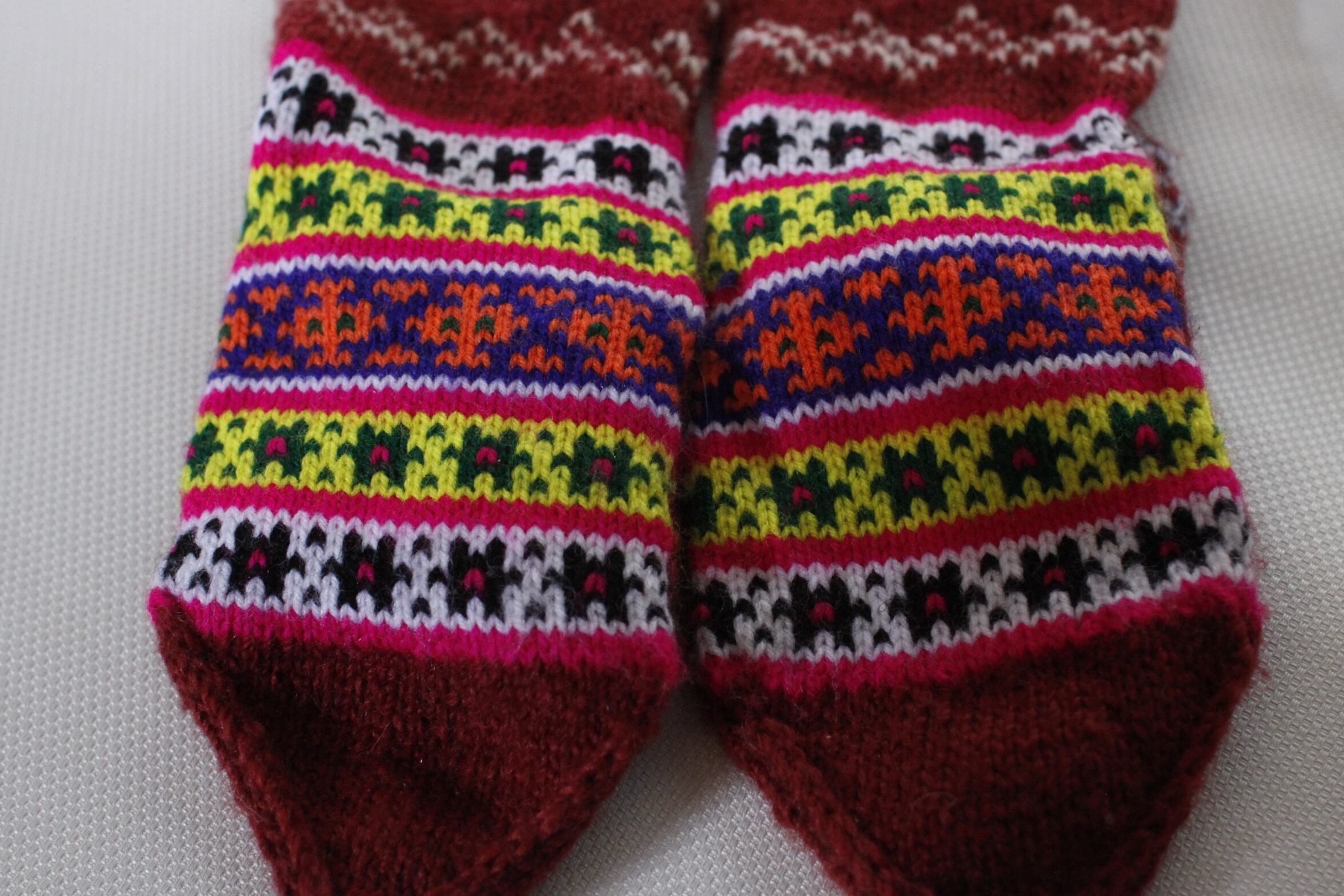 インド北部ヒマラヤの村の女性たちによって作られた手編みの靴下です。