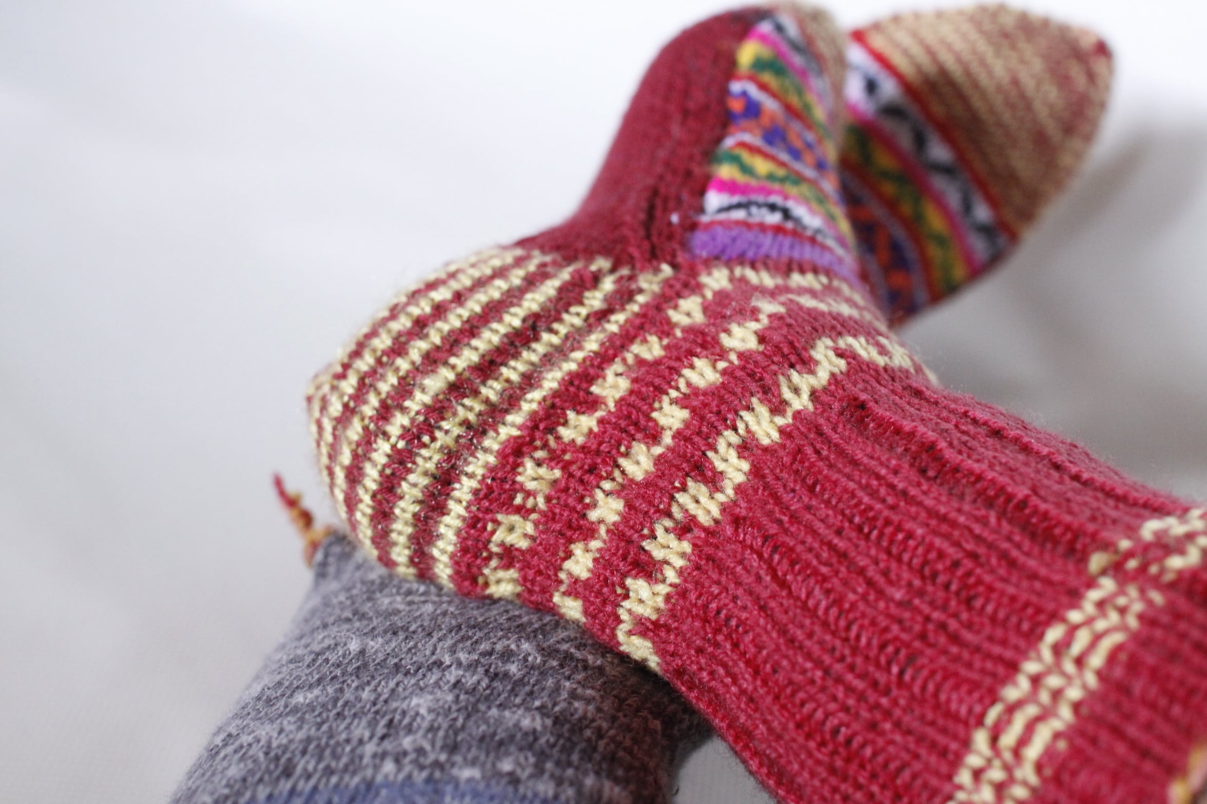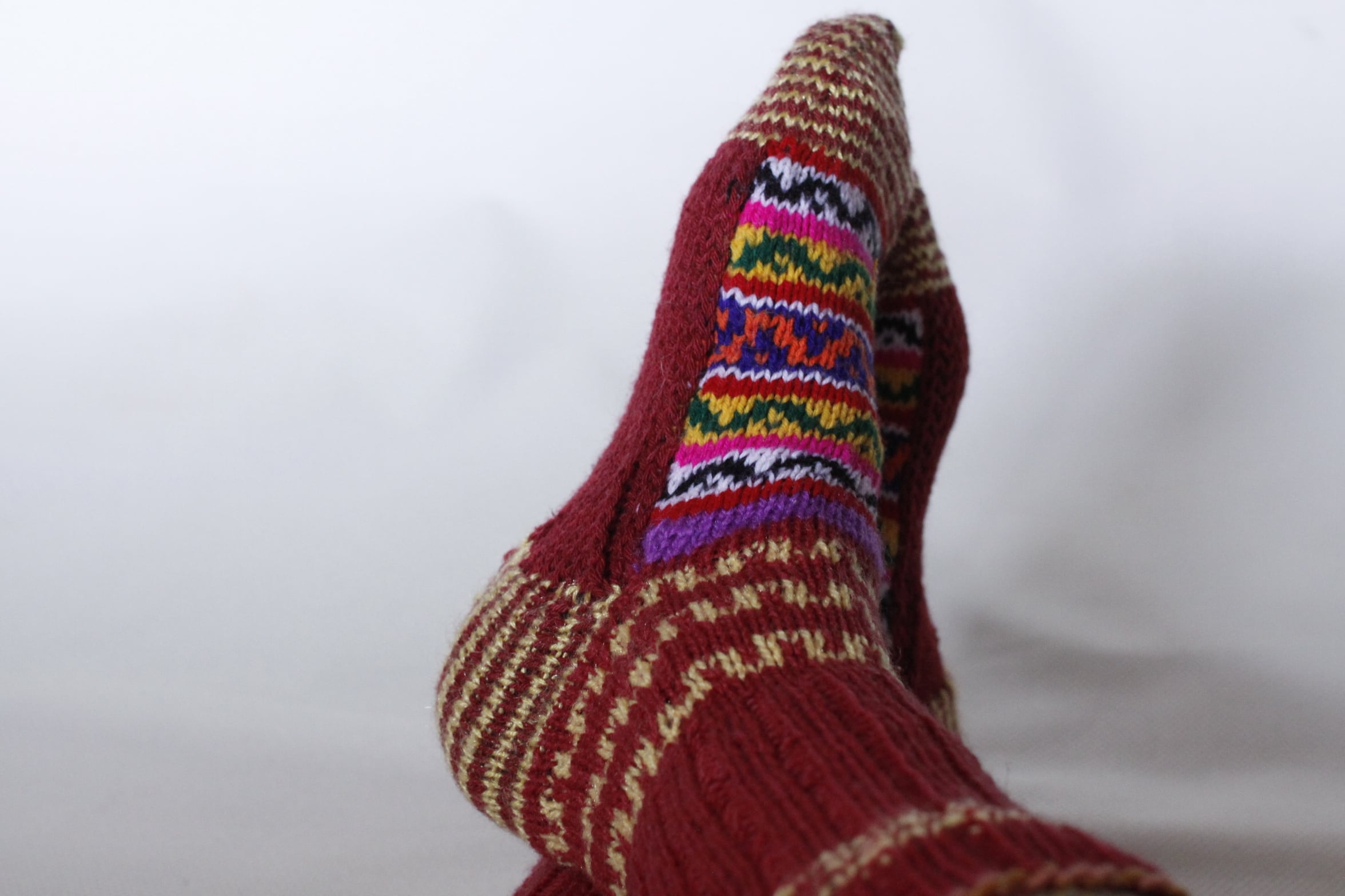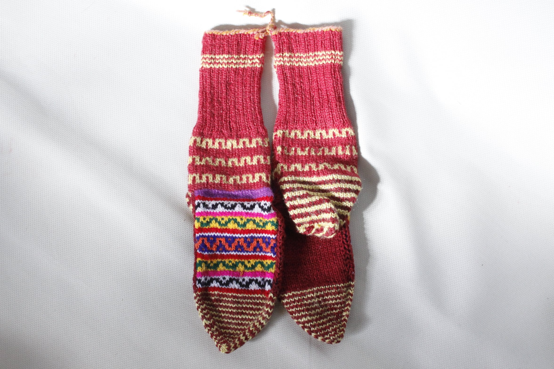 インド北部ヒマラヤの村の女性たちによって作られた手編みの靴下です。
