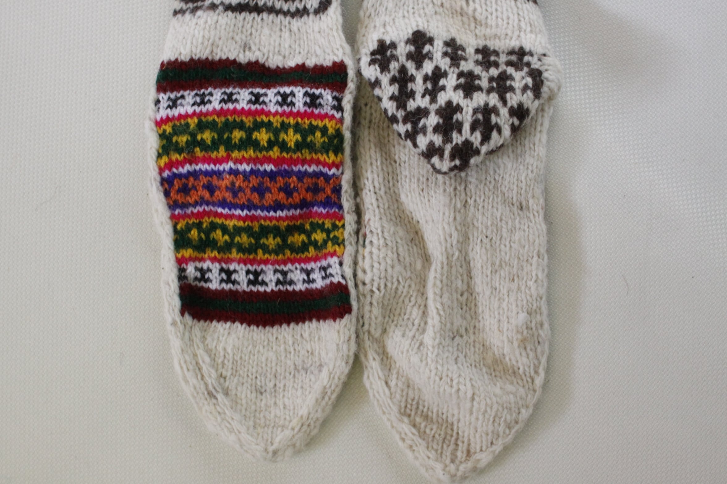 インド北部ヒマラヤの村の女性たちによって作られた手編みの靴下です。