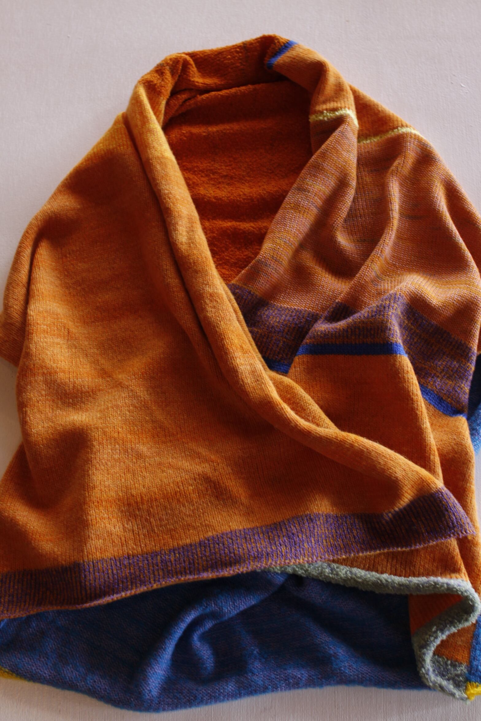 鮮やかなカラーリングは編み手でもある旦那様のインスピレーションによるもので