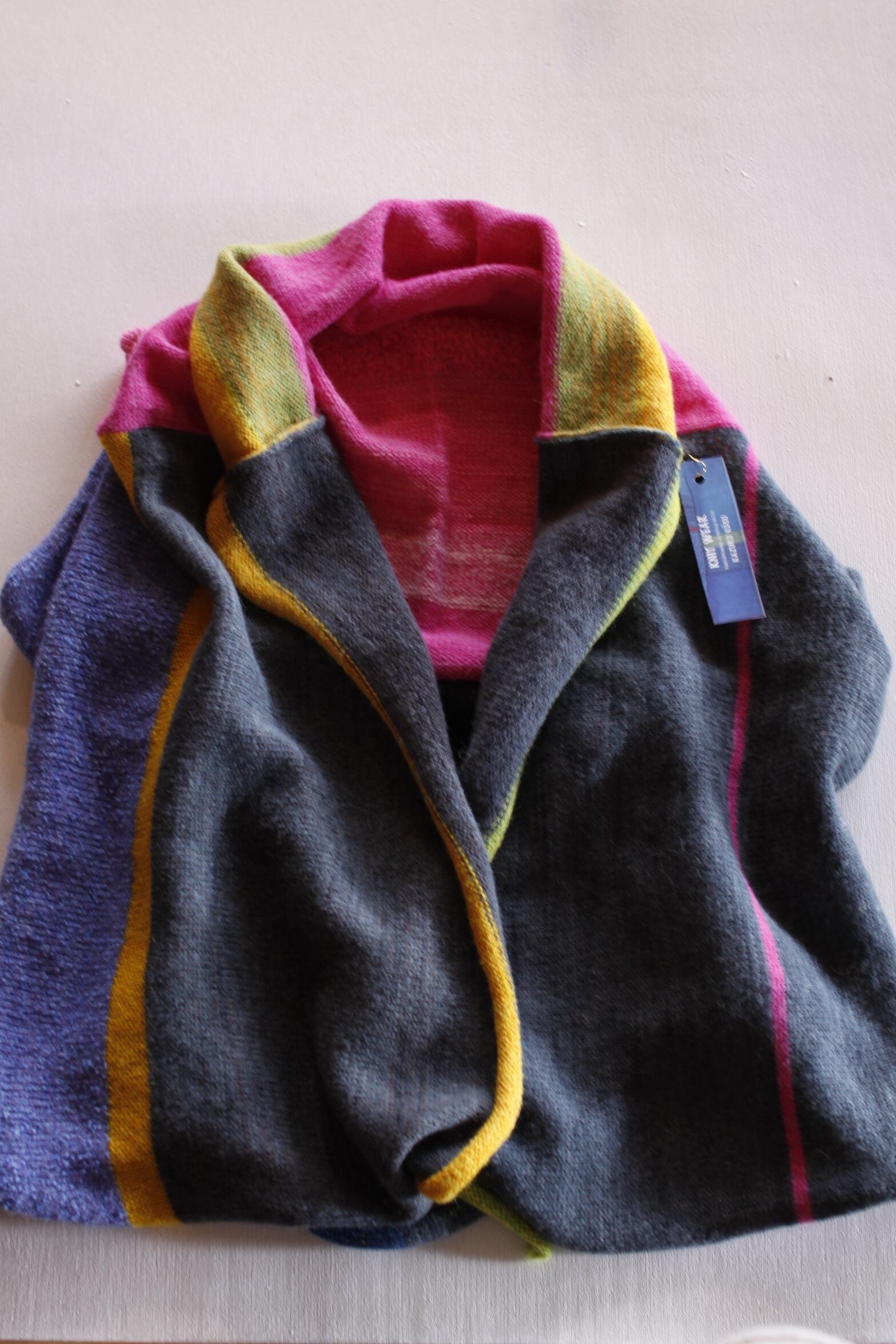 鮮やかなカラーリングは編み手でもある旦那様のインスピレーションによるもので