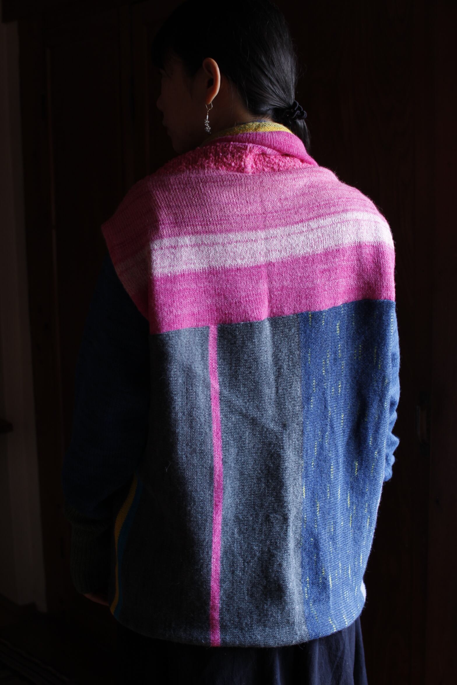 特にこのベストは身ごろの左右の重ね方で印象が変わったり上下反転することも可能です。