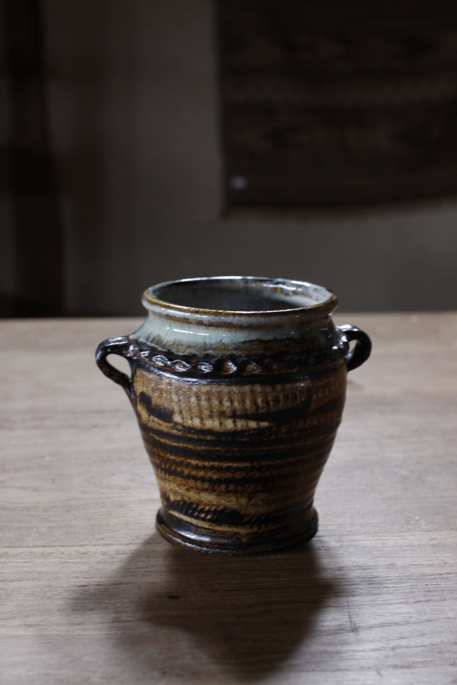 【沙器窯・柳瀬俊一郎】 飴釉壺 スリップウェア 13×12cm